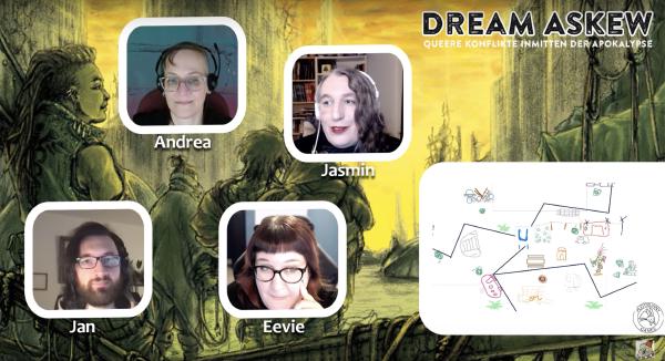 Ich wurde wieder zum Orkenspalter TV eingeladen. Dieses Mal haben wir Dream Askew gespielt, ein Rollenspiel über eine queere Gemeinschaft in der Postapokalypse, das gerade von Plotbunny Games übersetzt und crowdfunded wird.